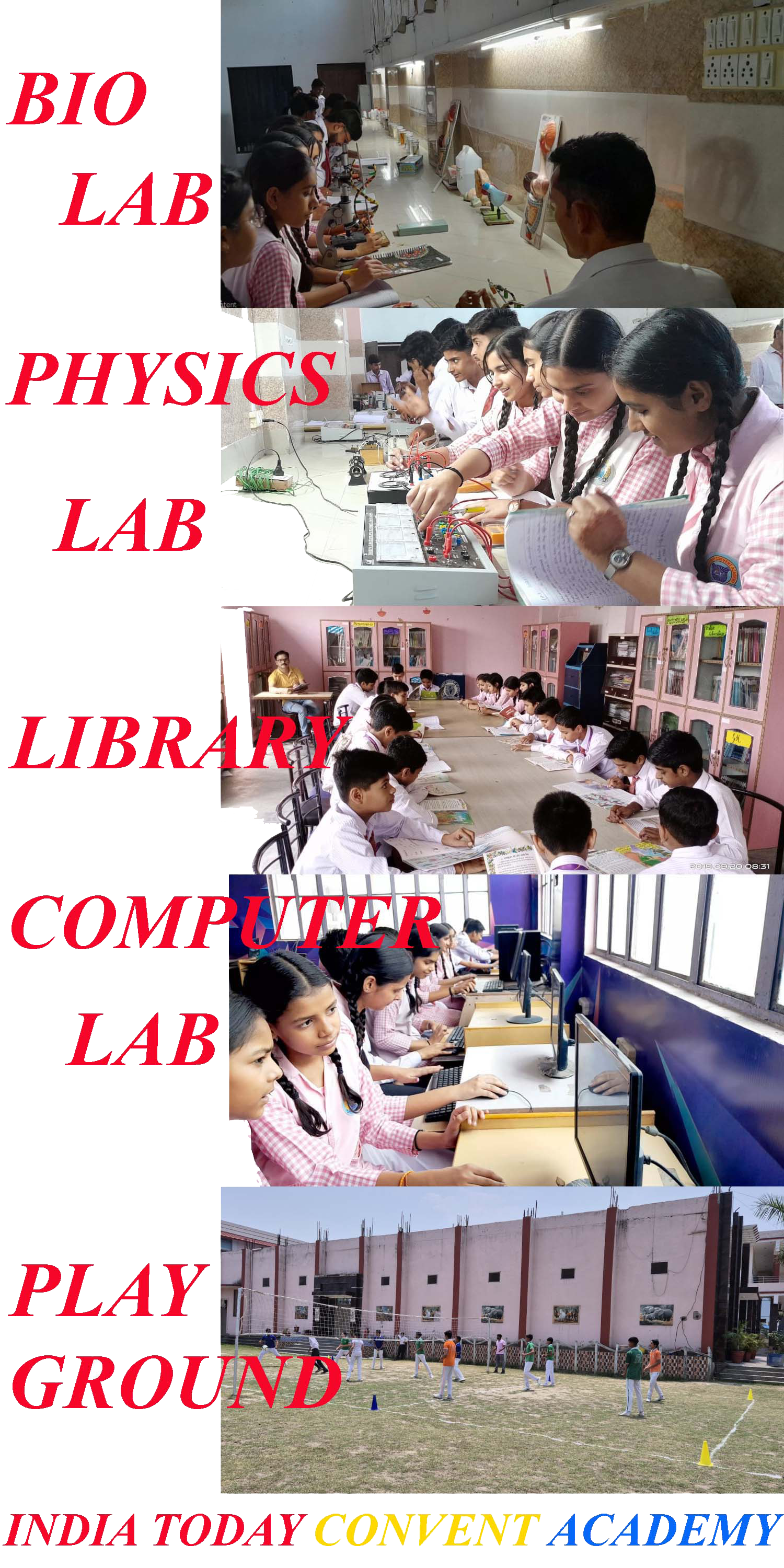 All Laboratories (Physics Lab , Chemistry Lab , BiologyLab , Composite Lab ) are equipped with all latest lab apparatus keeping in mind the standardized safety norms